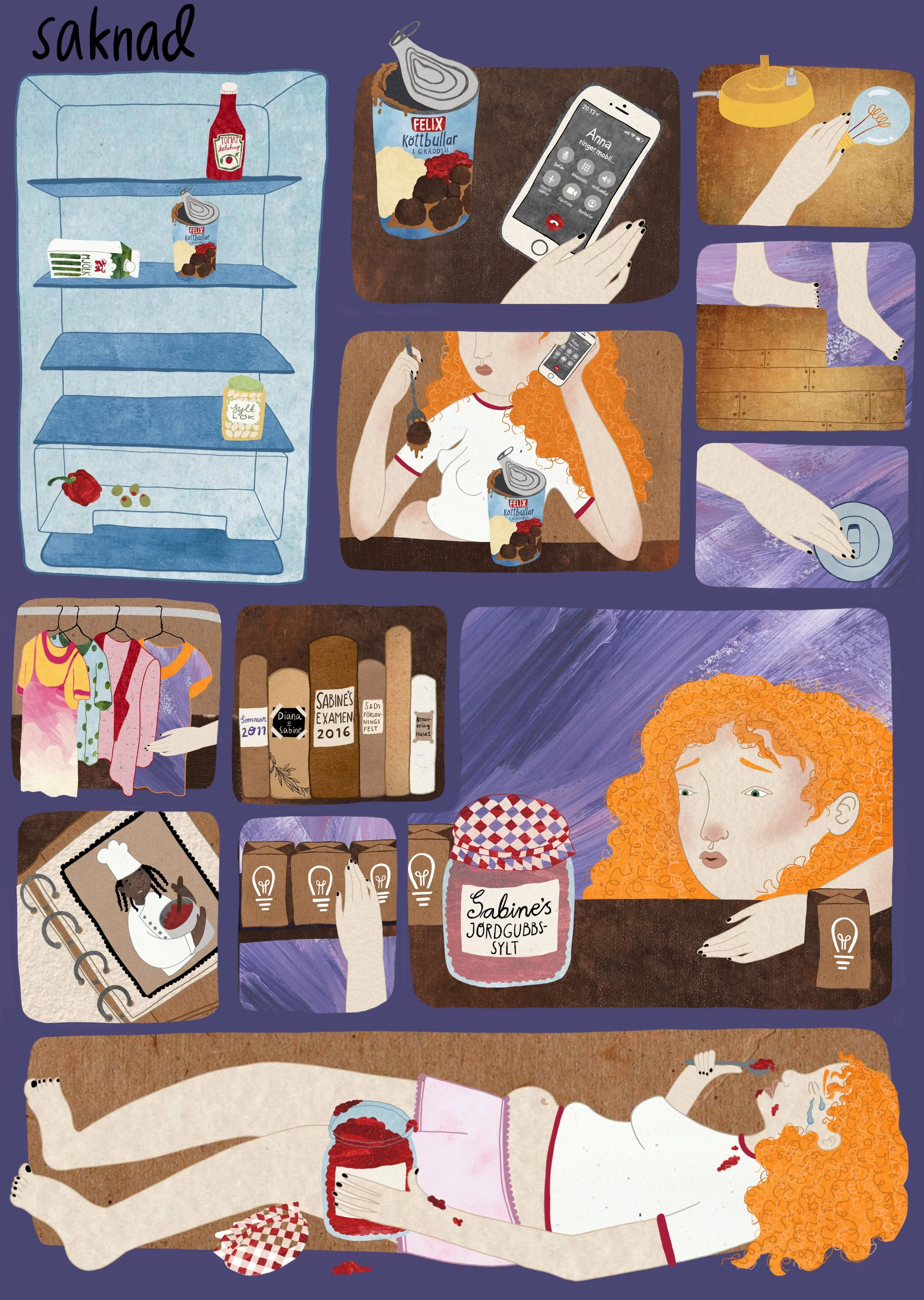 När jag studerade på Konstfack hade vi en kurs i att skapa en serie- men utan att använda någon text eller pratbubblor. Jag mindes en artikel jag läst i DN om en man vars fru dött- varav han sen i källaren hittade den sista maten hon någonsin lagat, och åt den i tystnad.